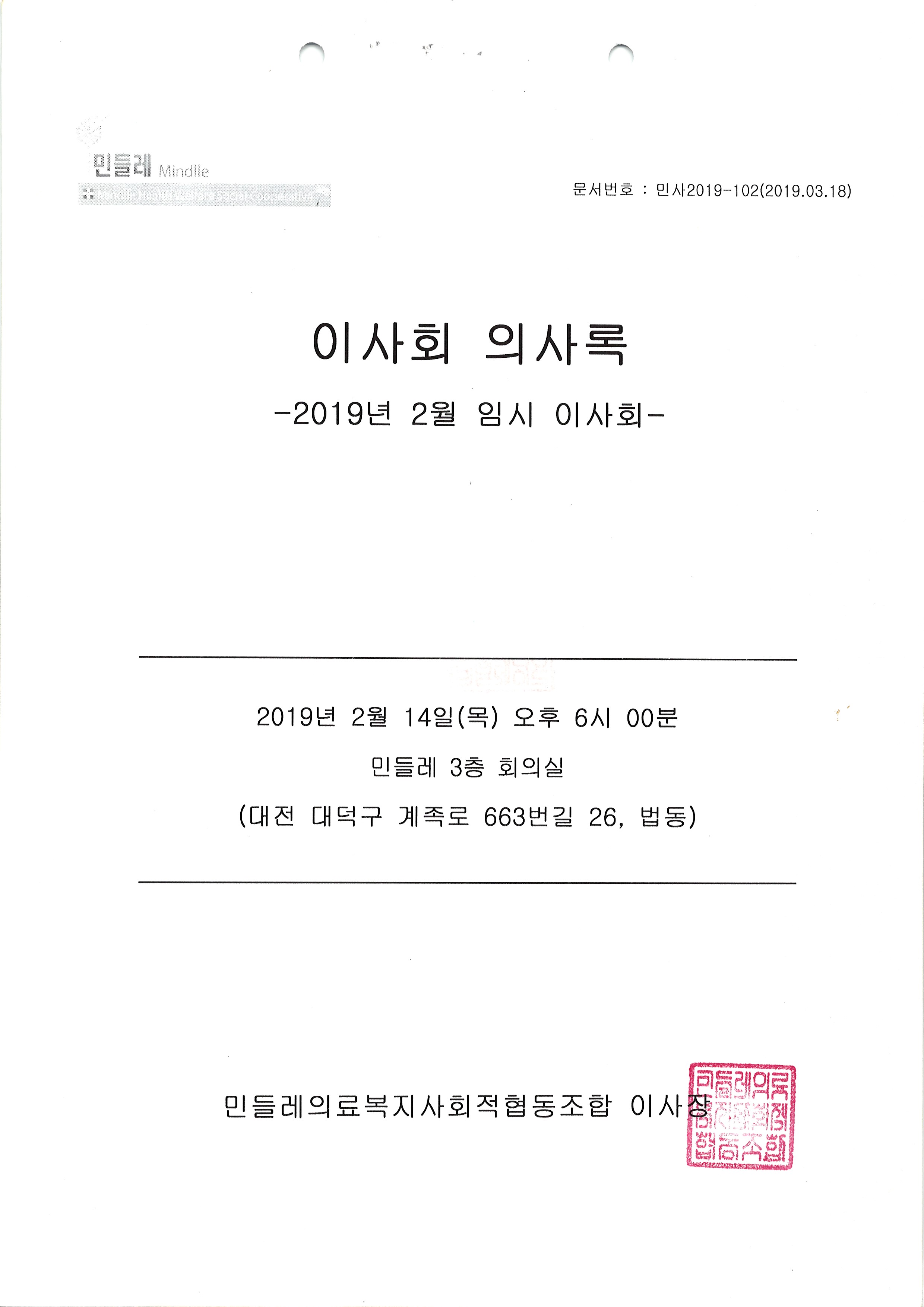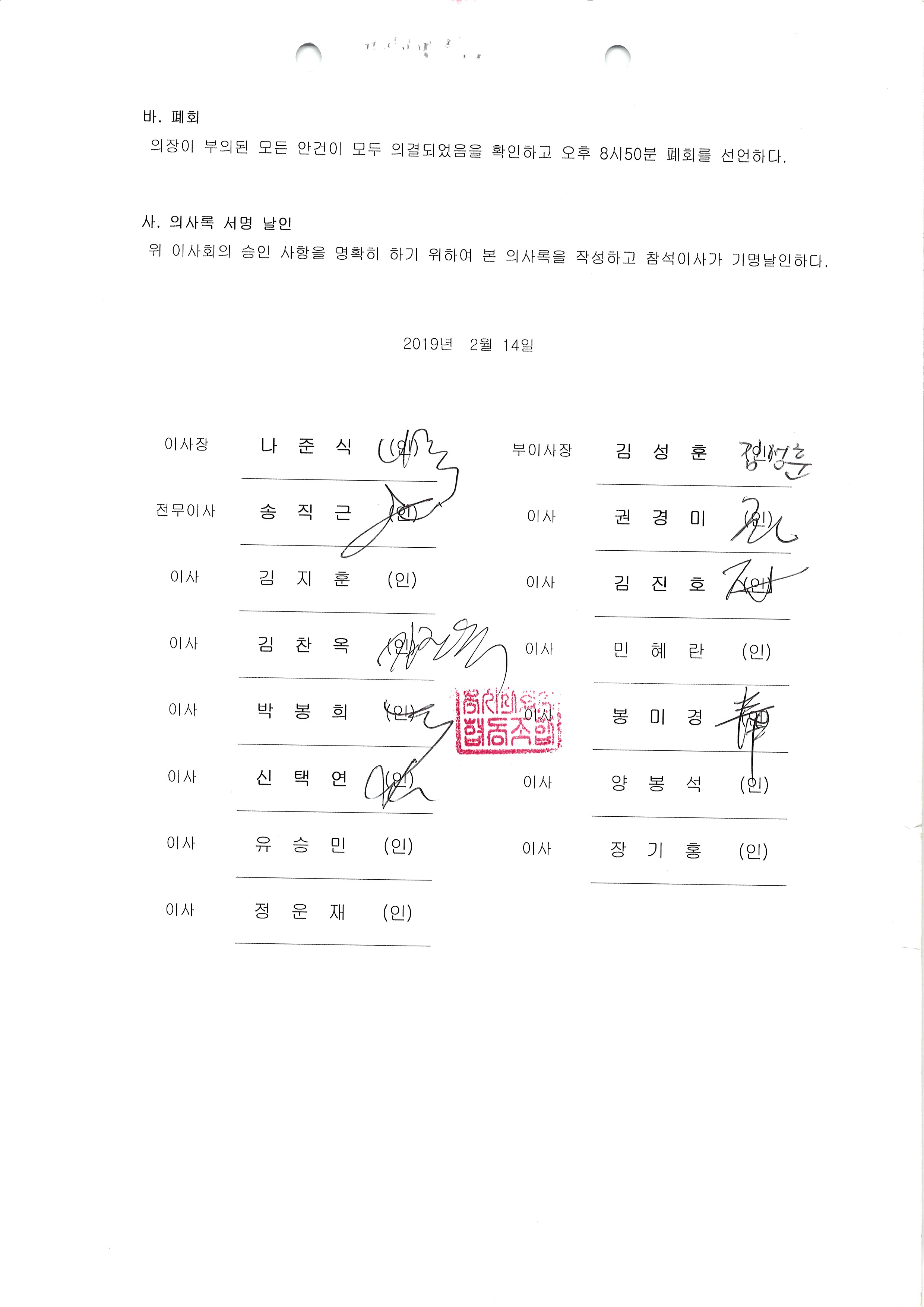 [2019-02] 임시이사회 결과보고