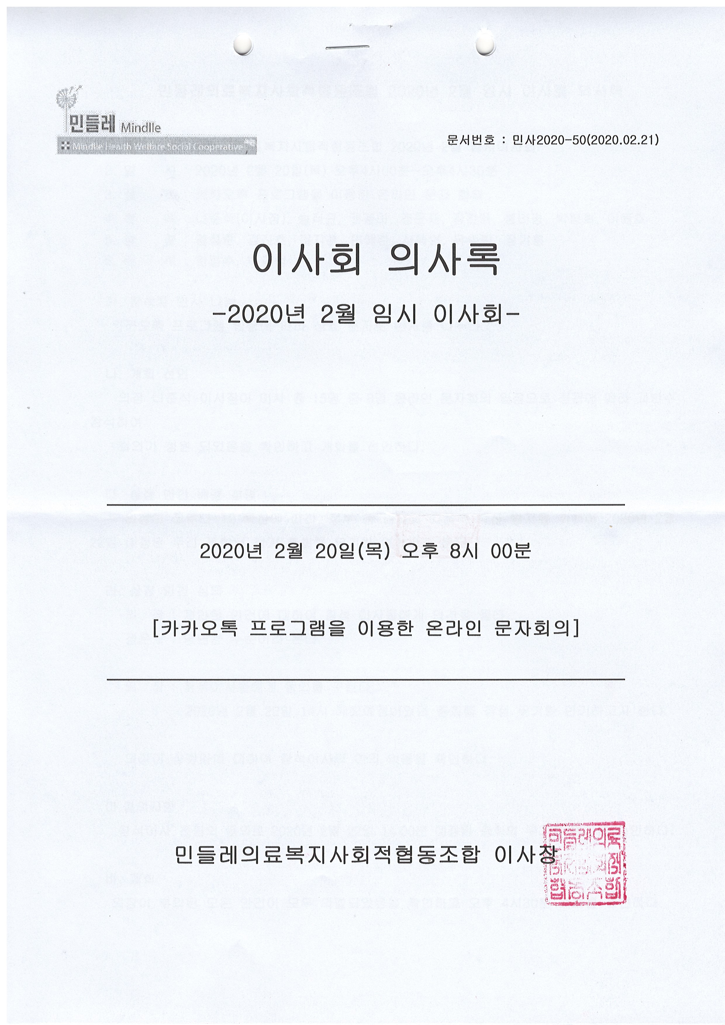 [2020-02] 임시이사회 결과보고