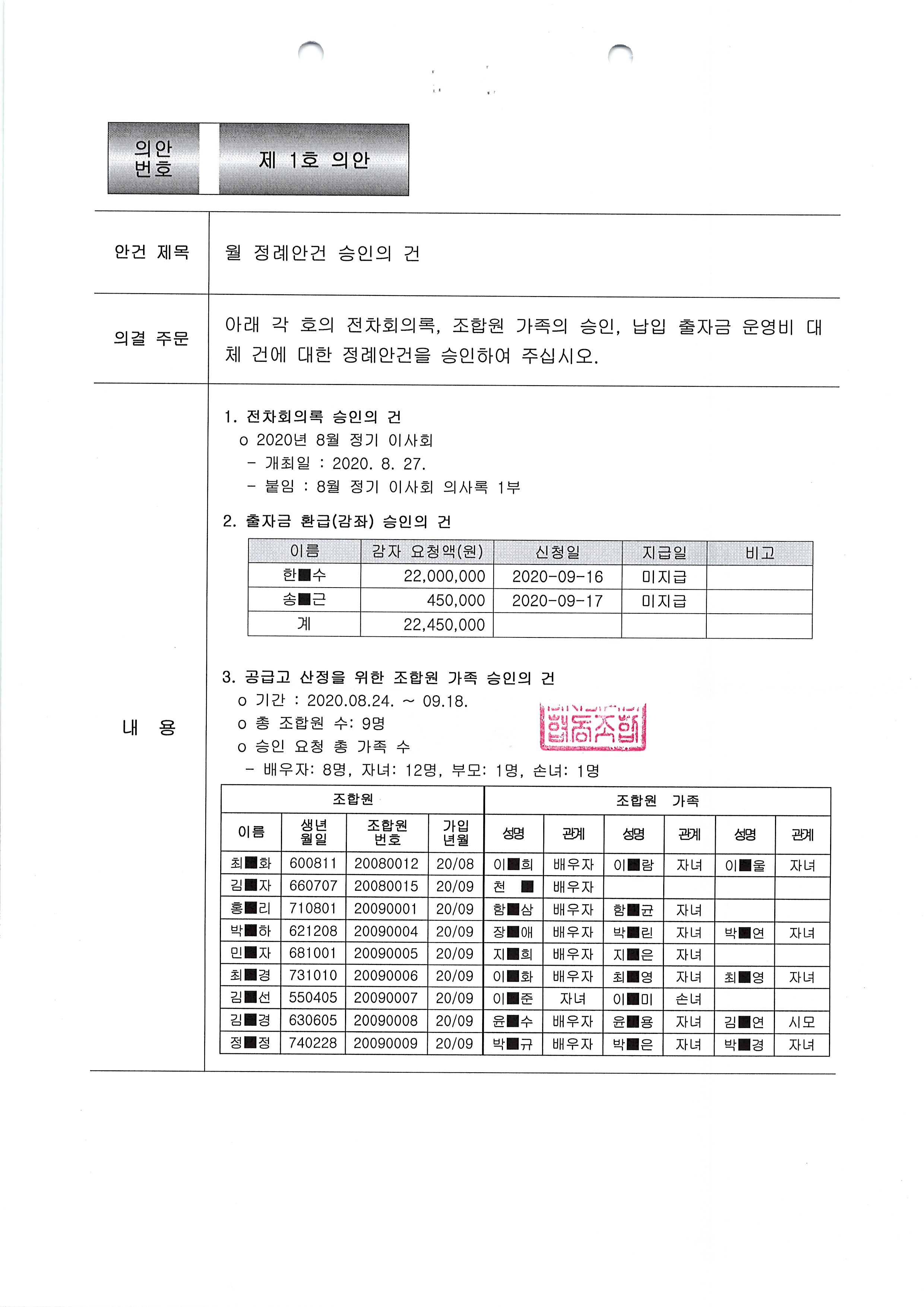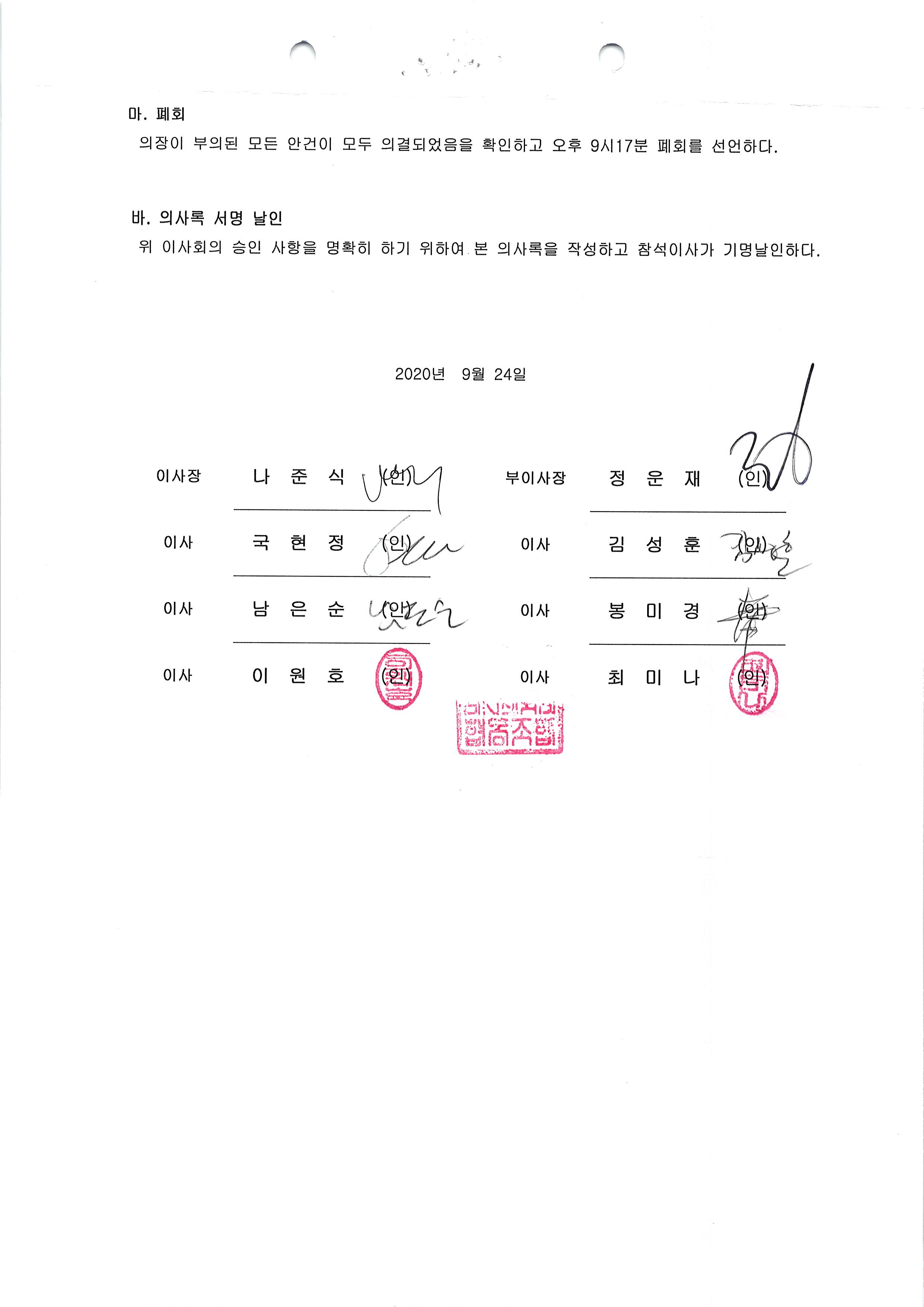 [2020-09] 정기이사회 결과보고 상세내용