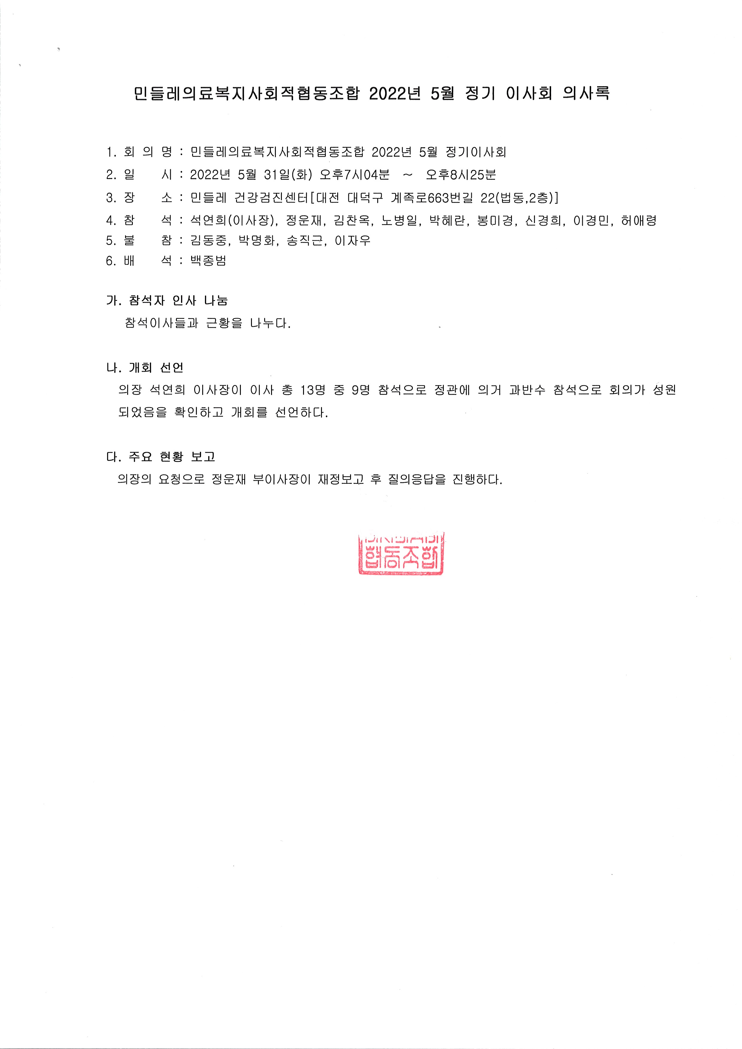 [2022-05] 정기이사회 결과보고