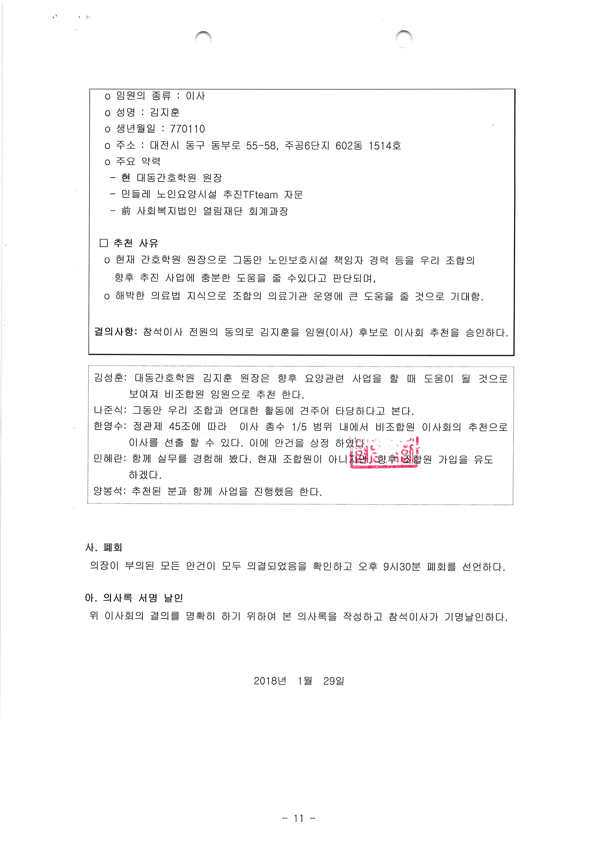 [2018-01] 임시이사회 결과보고