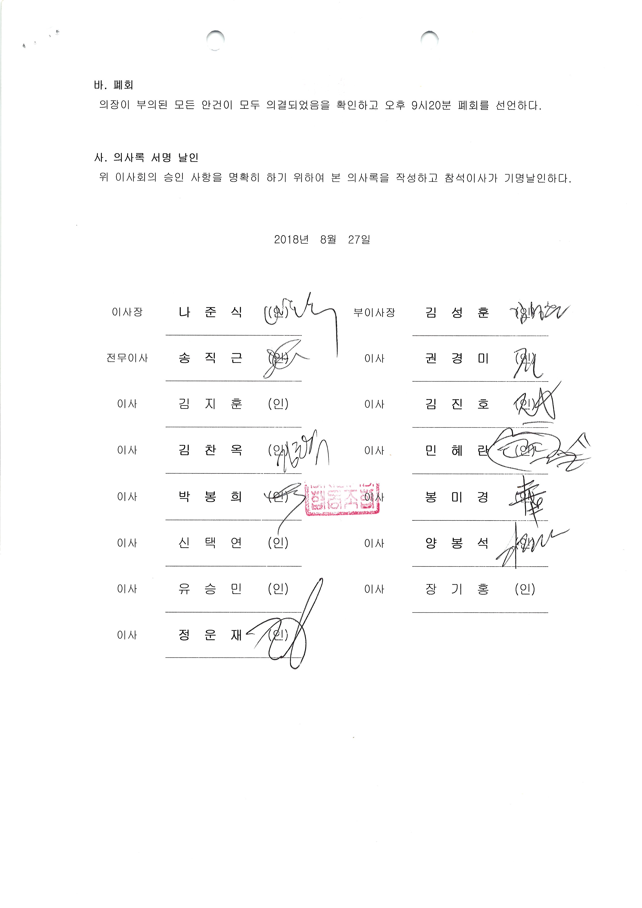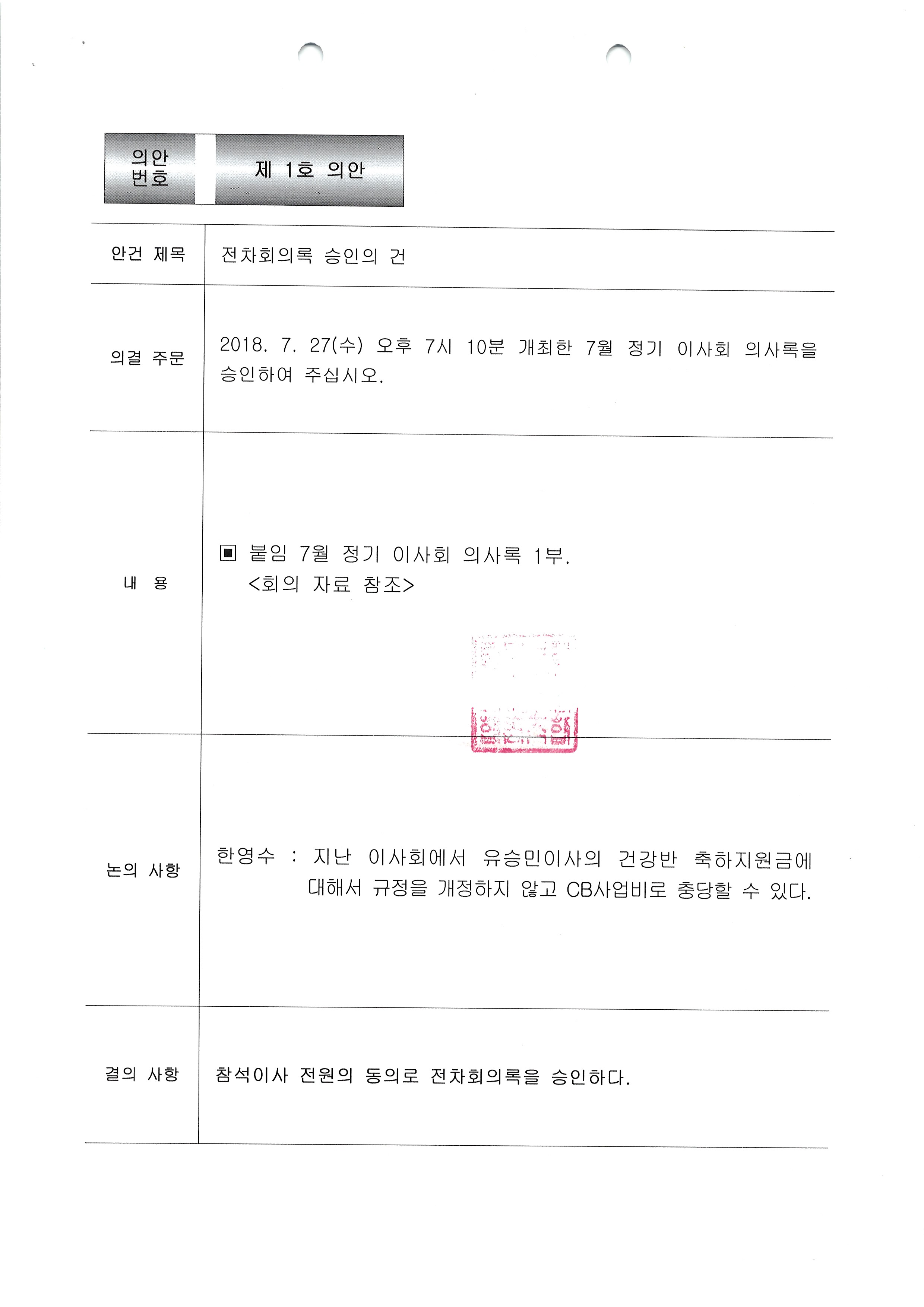 [2018-8] 정기이사회 결과보고 상세내용