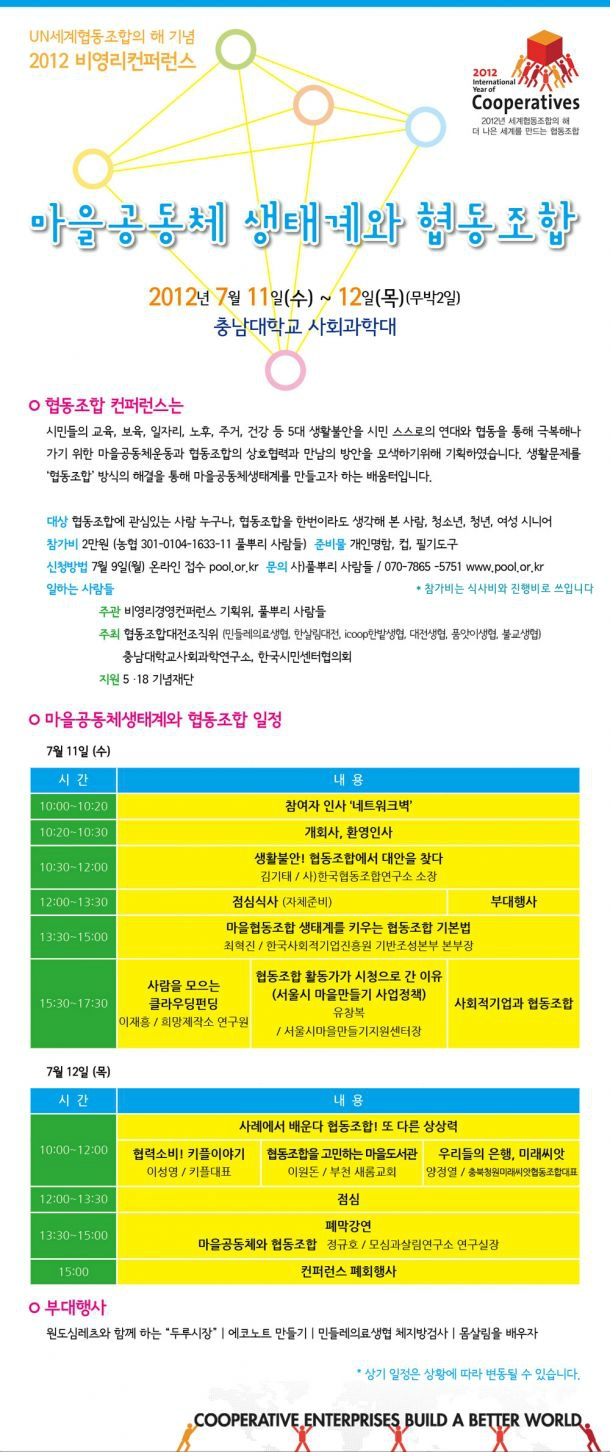| 제목 | 2012 비영리컨퍼런스'마을공동체 생태계와 협동조합' 개최안내 및 신청접수 |