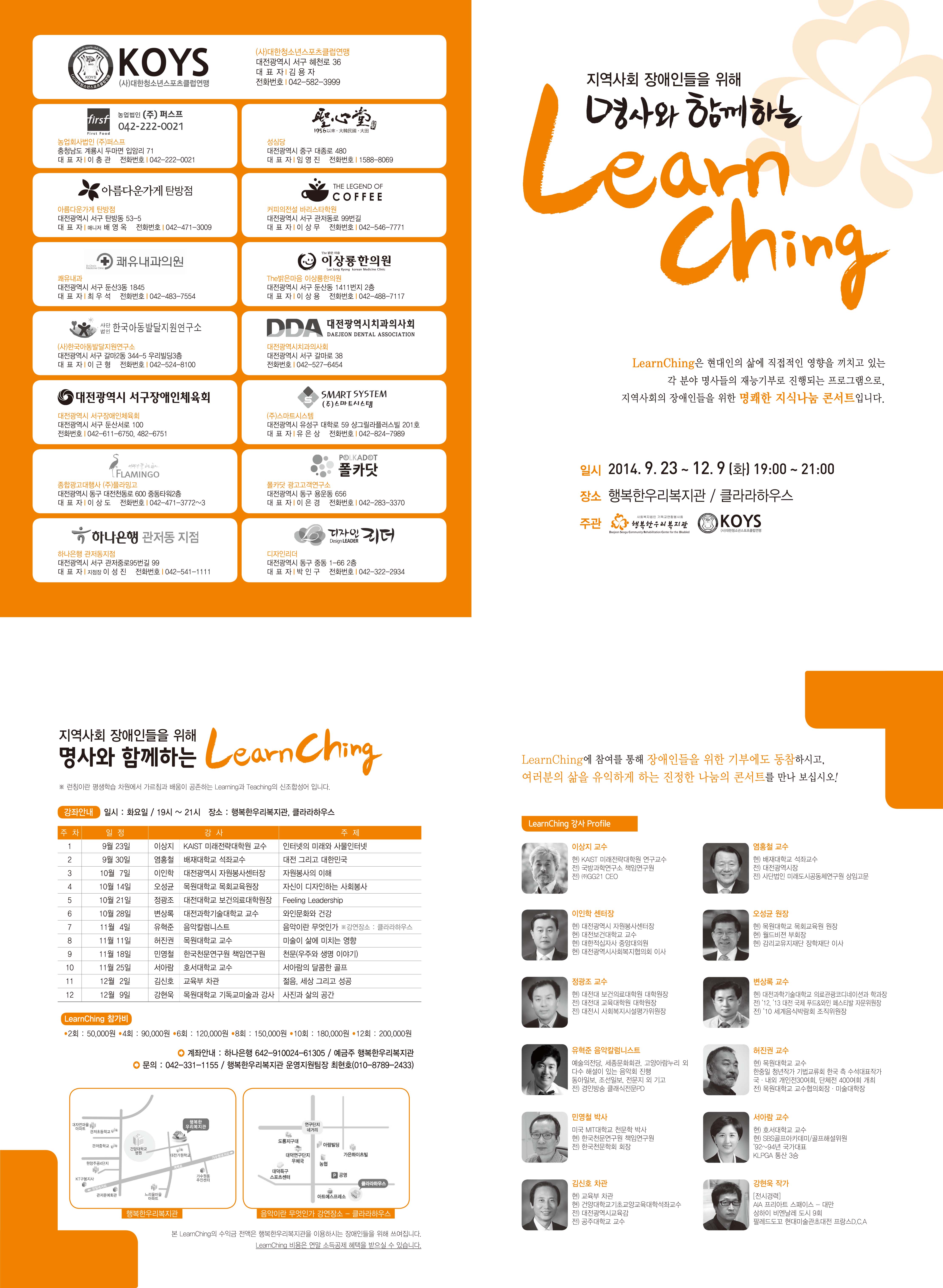LearnChing에 참여를 통해 장애인들을 위한 기부에도 동참하시고, 여러분의 삶을 유익하게 하는 진정한 나눔콘서트를 만나 보십시오!