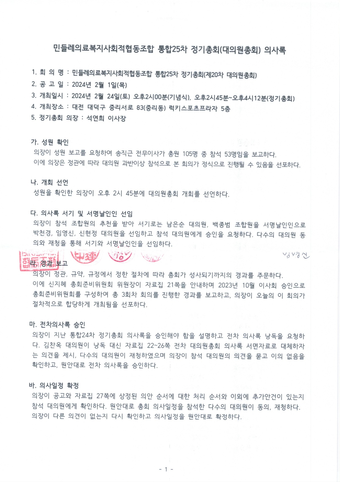 통합25차 정기총회의사록(2024.02.24)