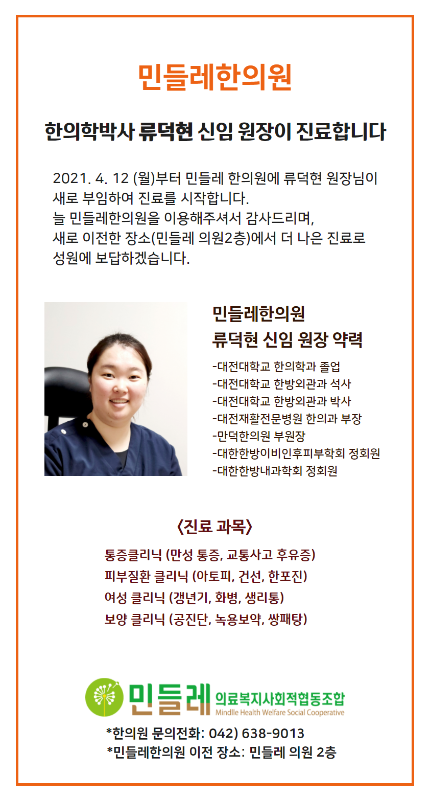 민들레한의원에 새로운 원장님이 오셨습니다!