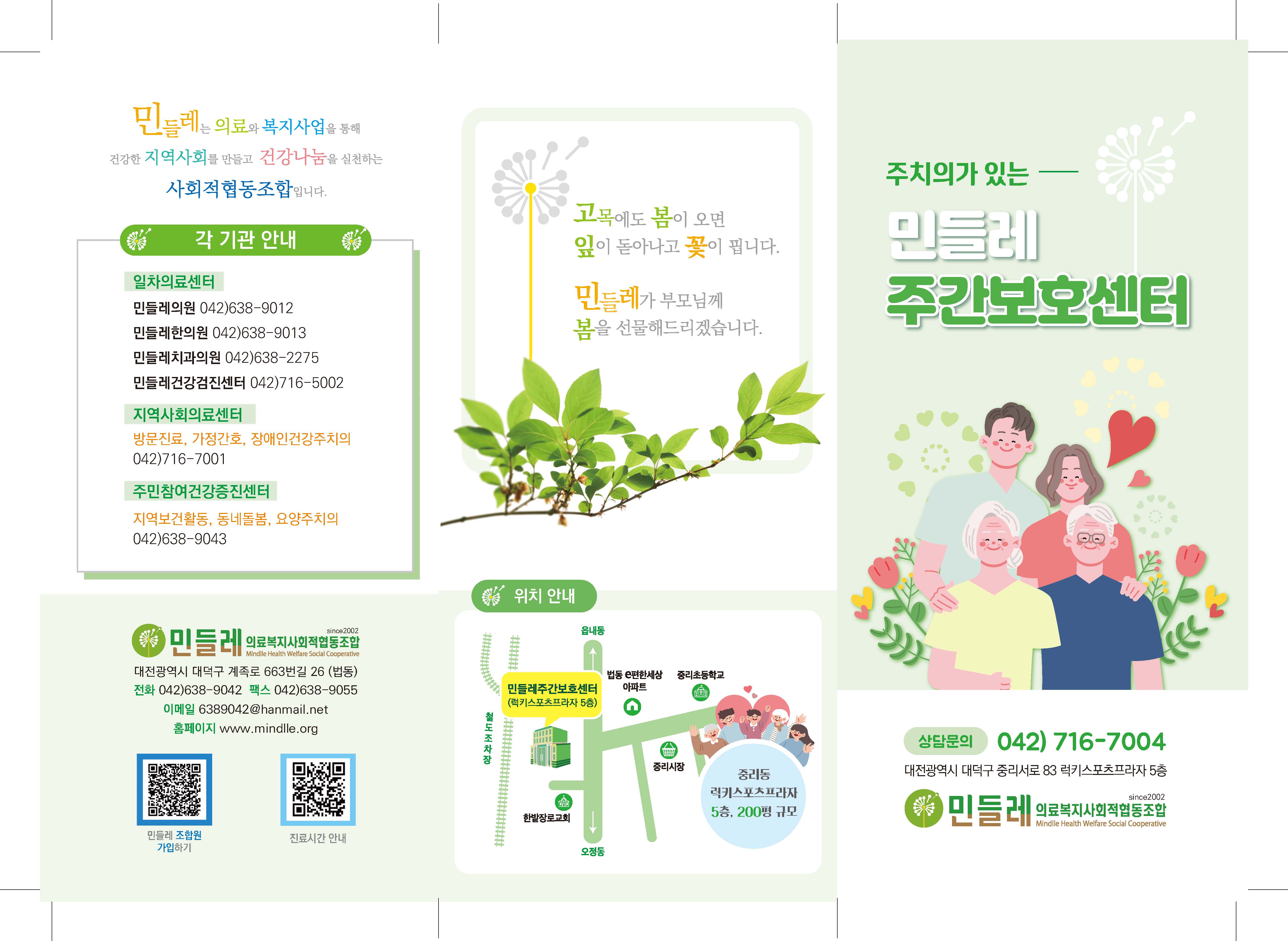 #민들레의료복지사회적협동조합 #민들레주간보호센터 #민들레요양주치의사업 #대전대덕구중리동럭키스포츠프라자5층