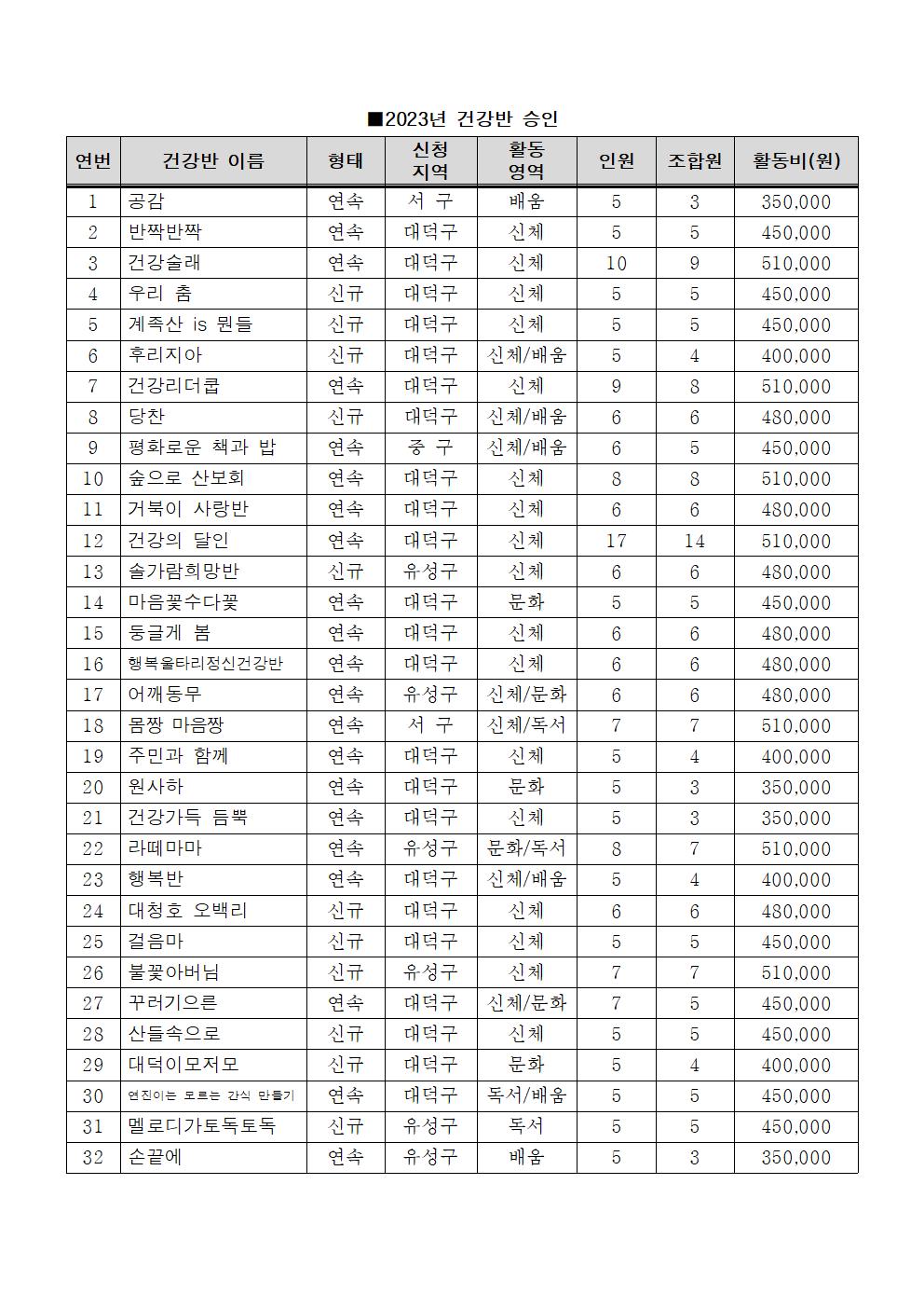 2023년도 '건강반' 활동에 보여주신 관심과 성원에 감사 드립니다 나의 건강약속 서로의 건강약속 공동체의 건강약속 건강의 '안부'를 물으며 함께 활동하실 2023년도 '건강반'을 아래와 같이 선정합니다 활동 내역을 확인해 주시고 특히 활동비 지원금을 나누어 다른 반들이 참여할 기회를 넓혀 주신 반들께 깊이 감사드립니다
