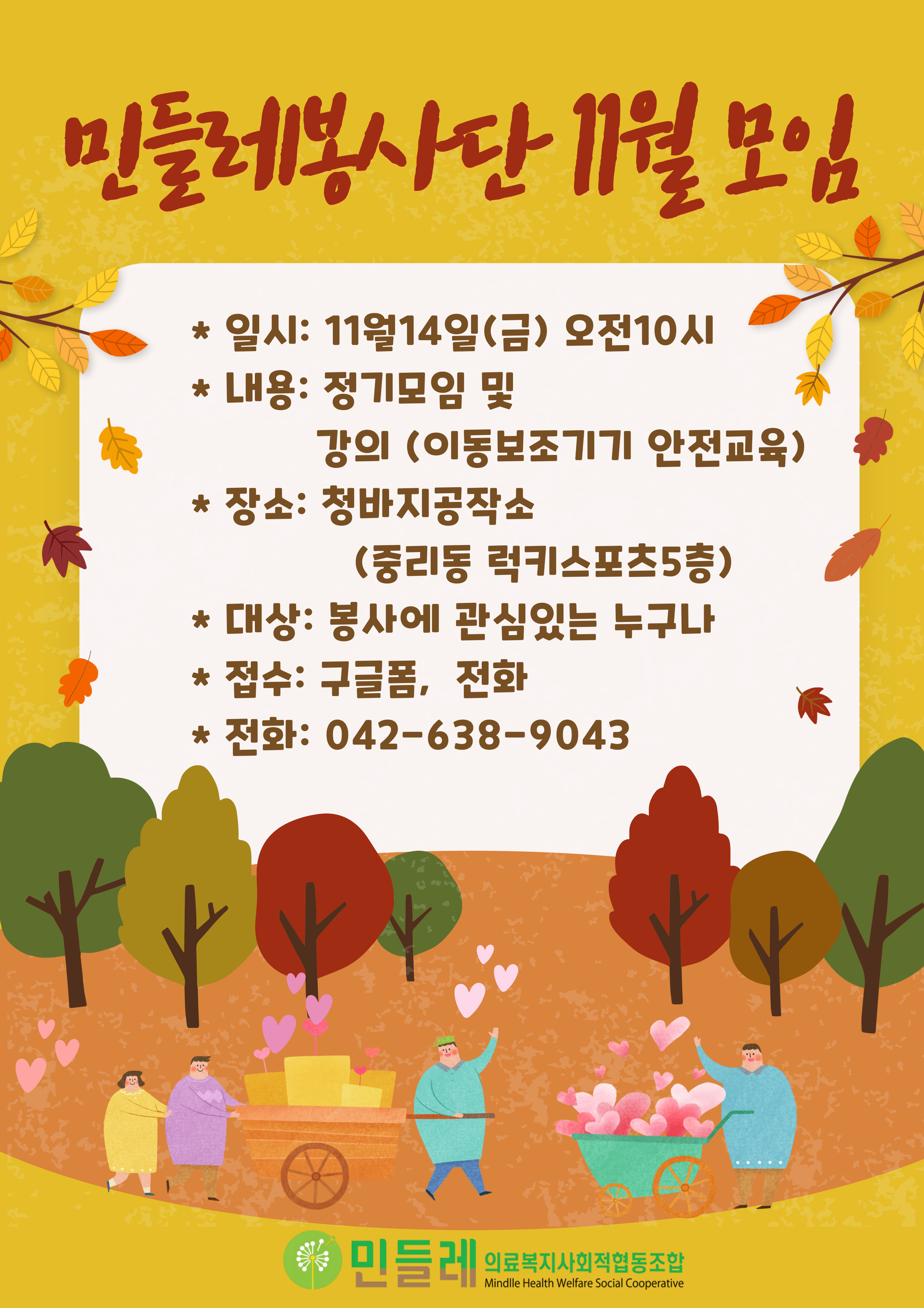 신청:https://forms.gle/C2XjiCK8N3WppzQm8 문의: 042-638-9043