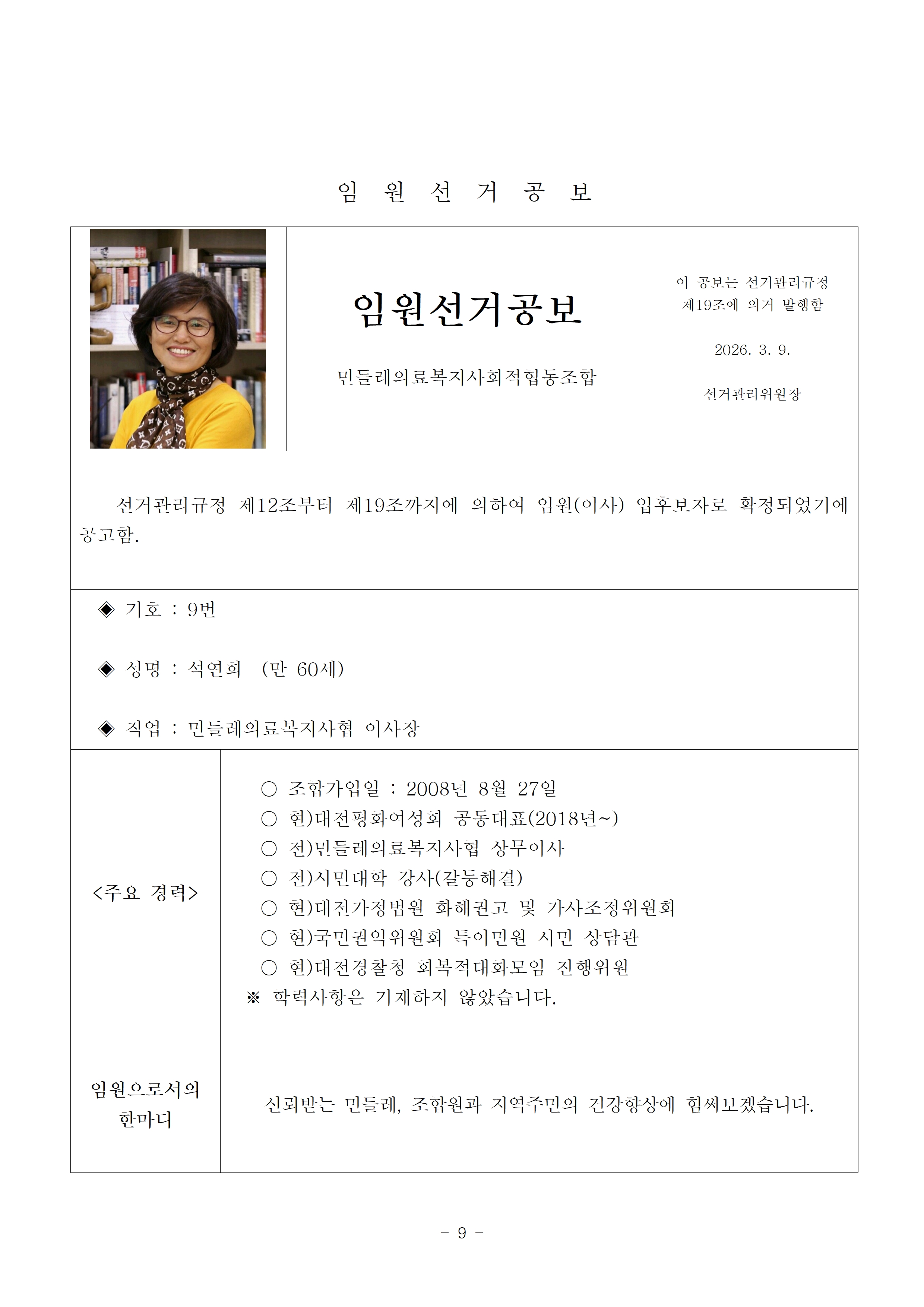 2026년 13기 임원(이사, 감사)선거 공보 상세내용