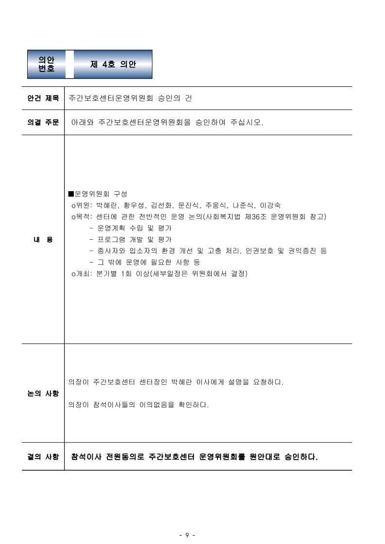 이사회회의록