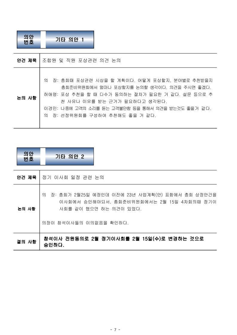 [2023-01] 정기이사회 결과보고
