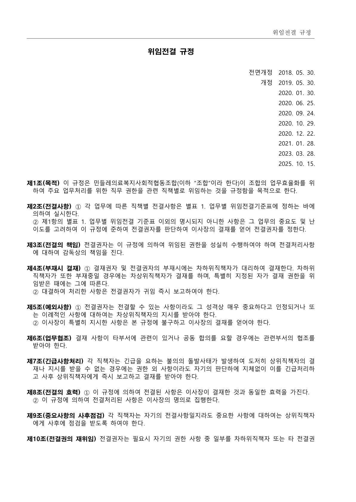 2.위임전결규정(2025. 10. 15 개정)
