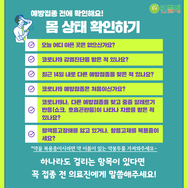 민들레조합원을 위한 코로나19 예방접종