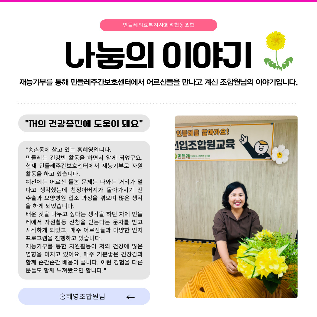 민들레의료복지사회적협동조합(mindlle)