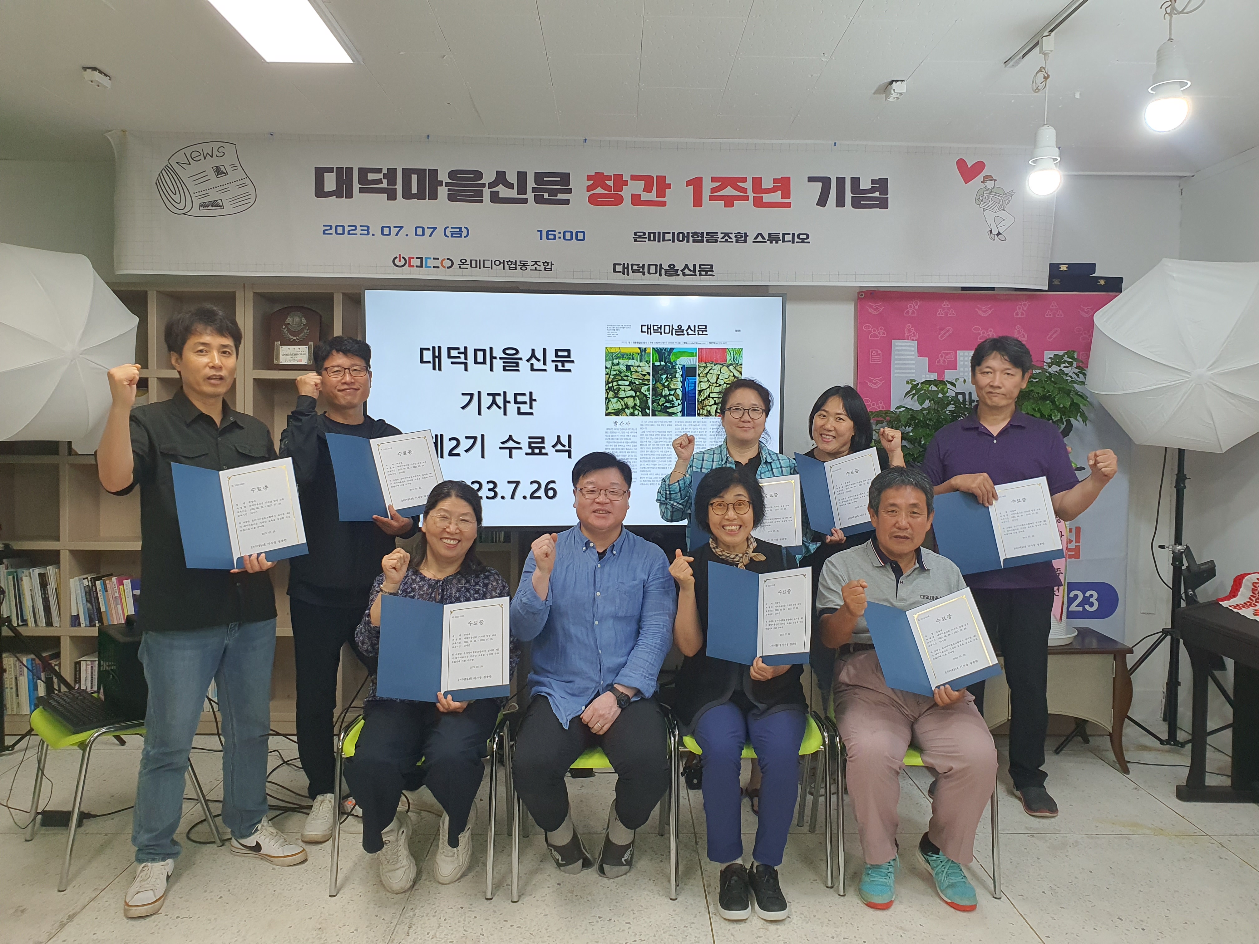 7월호 신문 기사 마감 및 편집 회의 / 7월 7일 창간 1주년 기념행사 평가 / 2기 신입기자 양성과정 수료식