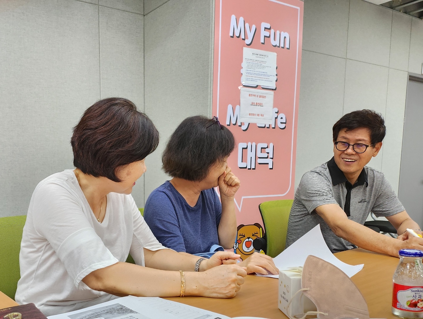 주민지치 건강반회의를 하고 더운여름을 지내느라 지친 마음을 차 한잔으로 풀면서 송촌주민자치 축제와 건강반 사업에 대해 논의함
